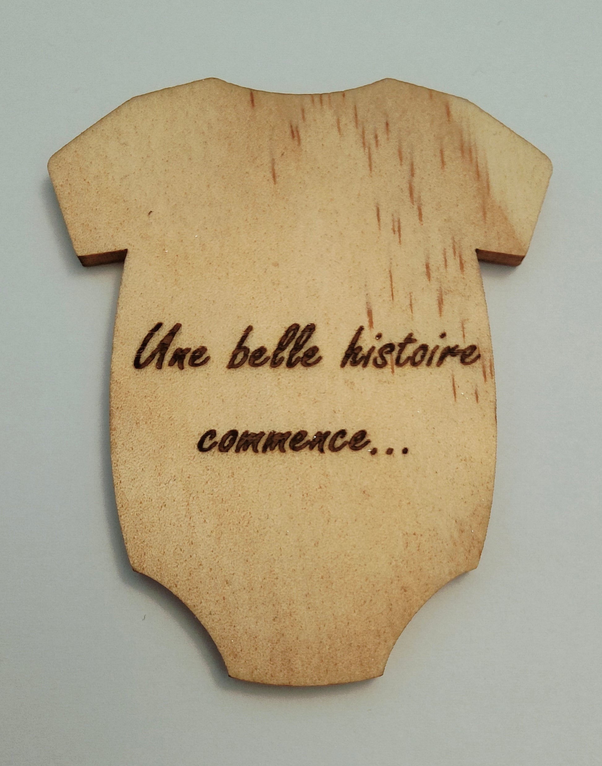 Annonce grossesse - body en bois - Une belle histoire commence