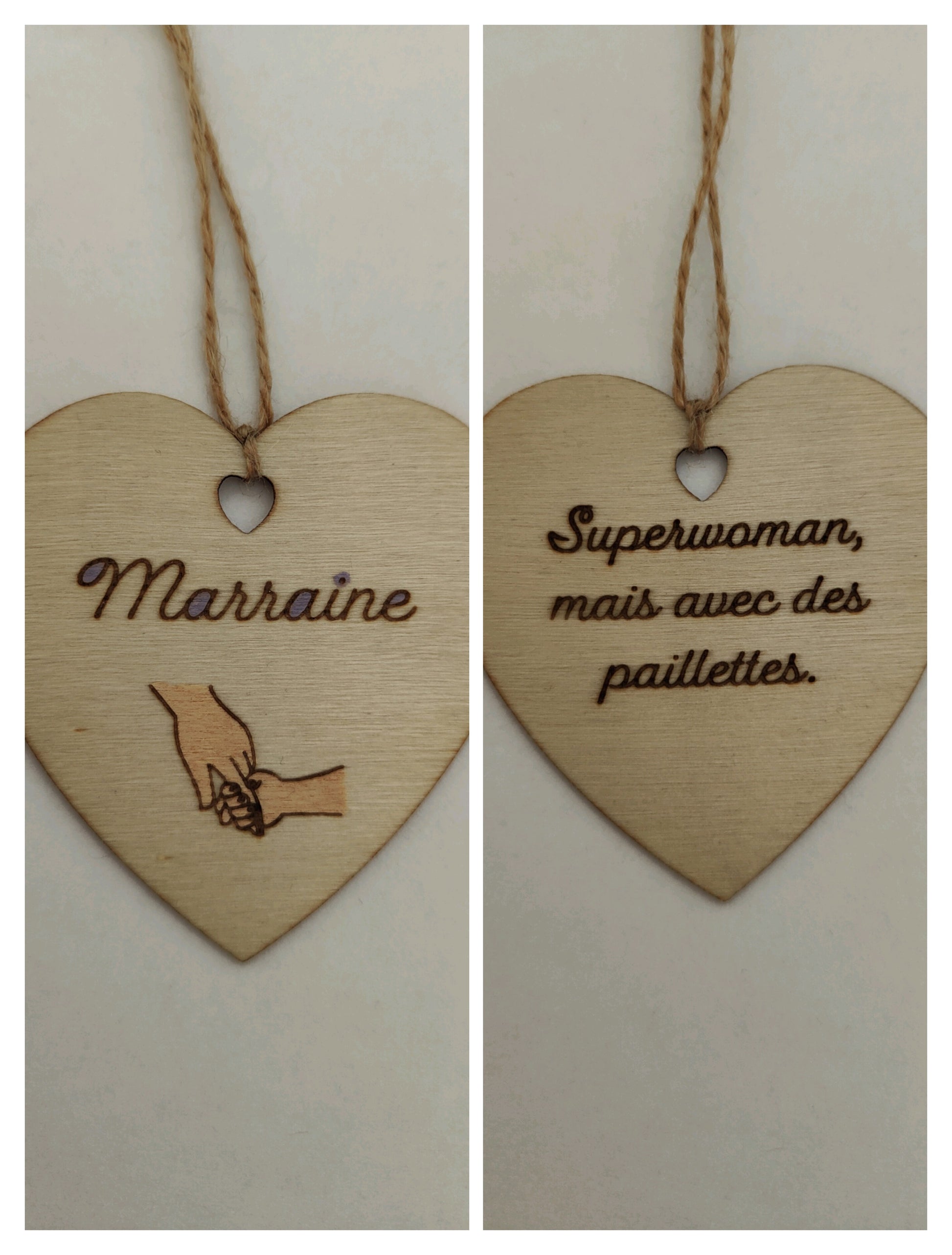 J’ai eu envie de graver quelques petits cœurs en bois pour célébrer ces personnes si spéciales dans la vie d’un enfant : la marraine !
