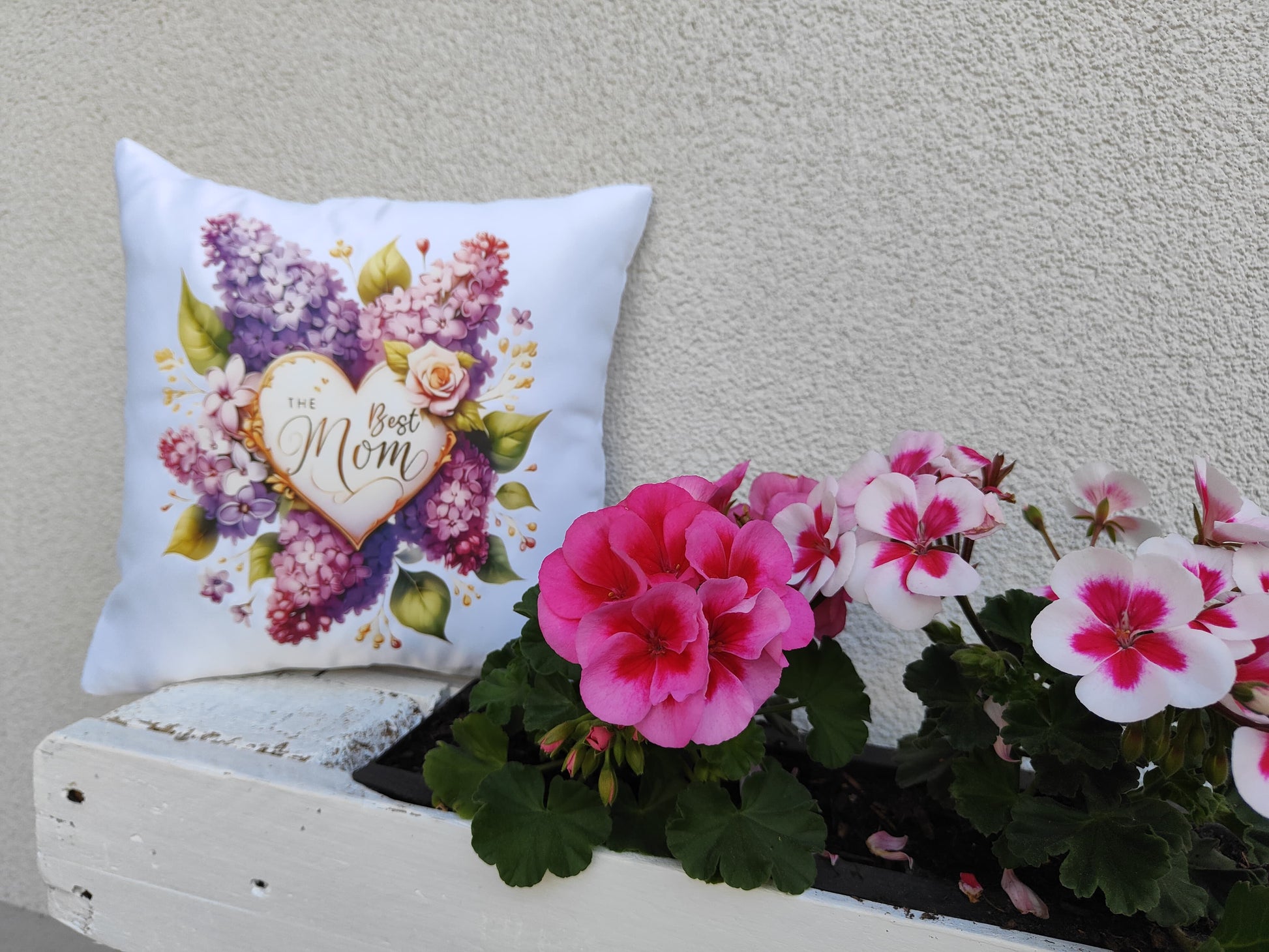 Chaque coussin est une pièce unique, décorée de magnifiques fleurs colorées et d’un message plein d’amour : “The Best Mom”.