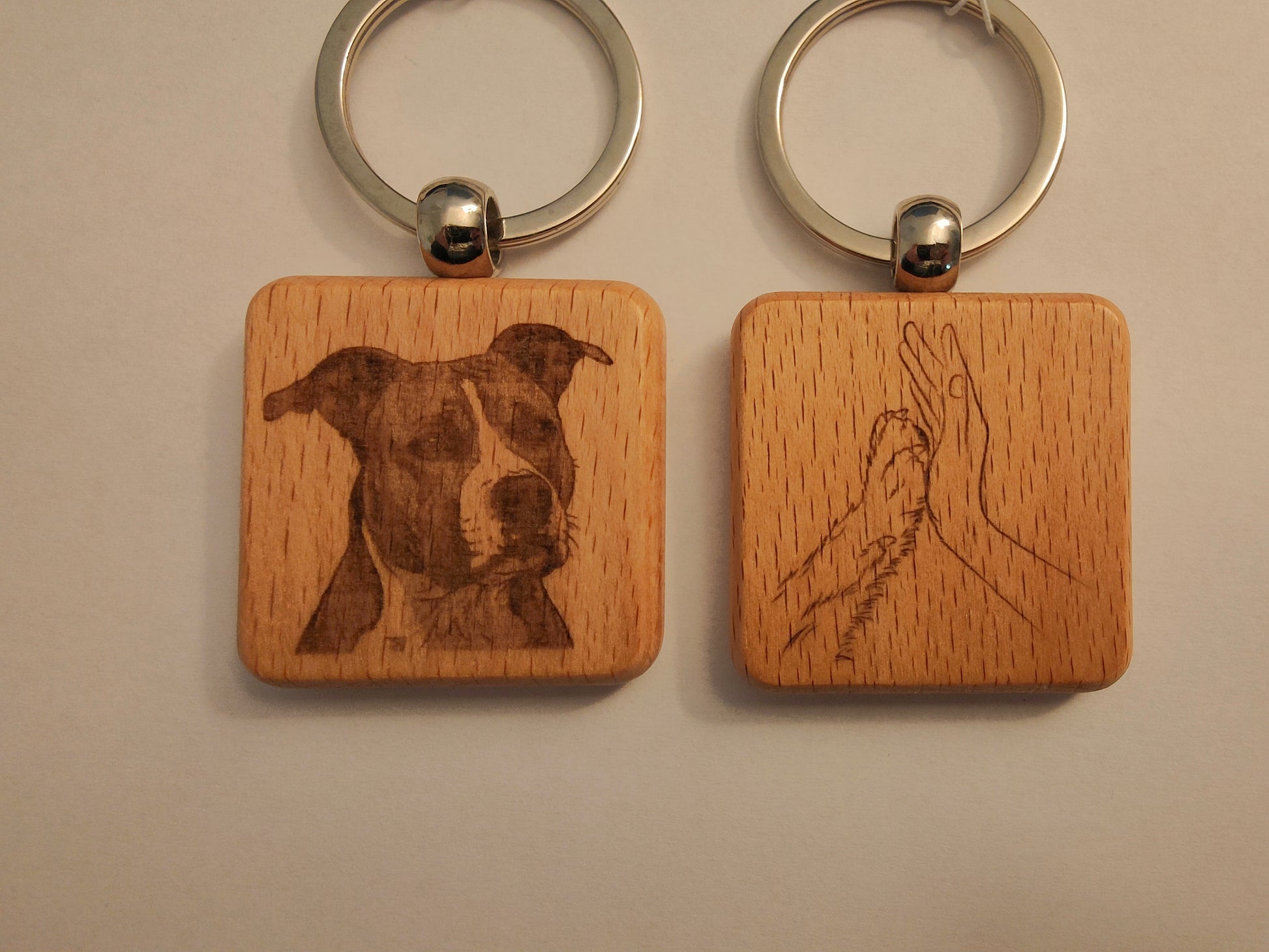 Porte-clés en bois gravé – Chiens